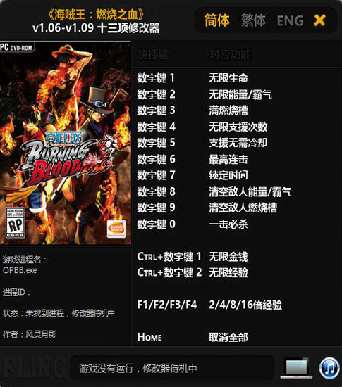 海贼王燃烧之血十三项修改器风灵月影版注意事项: