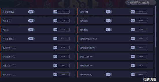 2、开启主基地修改:只在选中主基地时修改。能量/食物/金钱供应修改后,在下次基地进度重新开始计算时刷新,重新读档可还原。