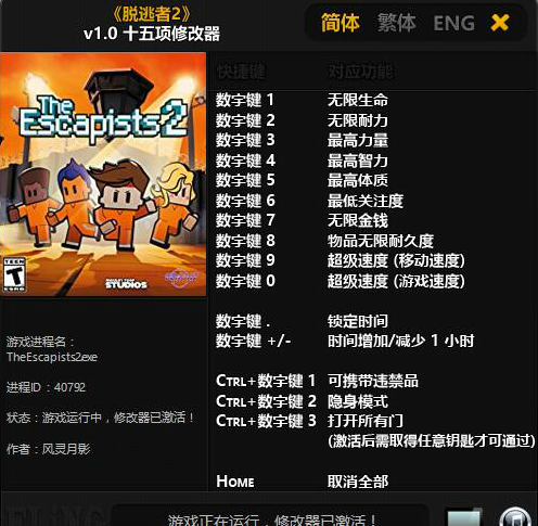 逃脱者2十五项修改器风灵月影版特色: