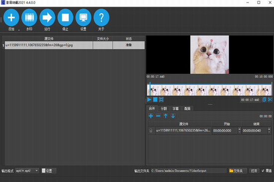 批量给视频加水印、字幕;批量视频、声音分割、合并和截取,声音提取;批量轻松加入广告。
