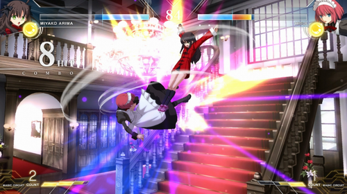 [MELTY BLOOD Actress Again Current Code]的壮大物语,得以在[ARCADE]里的晓。1年前的噩梦,再次来临。各个物语的人物,究竟采取何种行动? 此外,在[VERSUS」里,玩家可利用各种战斗配合,立即战斗。想先练好功夫的,可先前往[TRAINING]练上七七四十九种连接击后下山挑战他人。