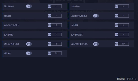3、本修改项开启后,进入战斗AI最小生命修改同样需要战斗开始前开启或开启后重新开始战斗,生命行动点修改后在减少时会刷新。