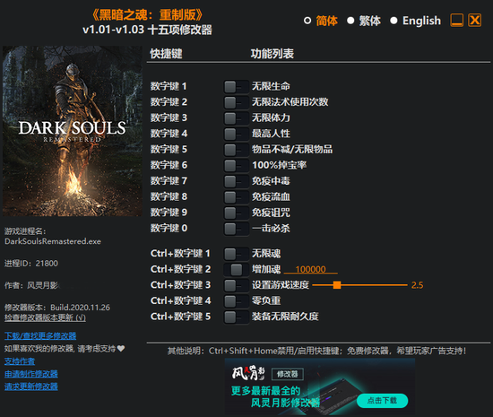 黑暗之魂重制版修改器 v1.03 风灵月影版