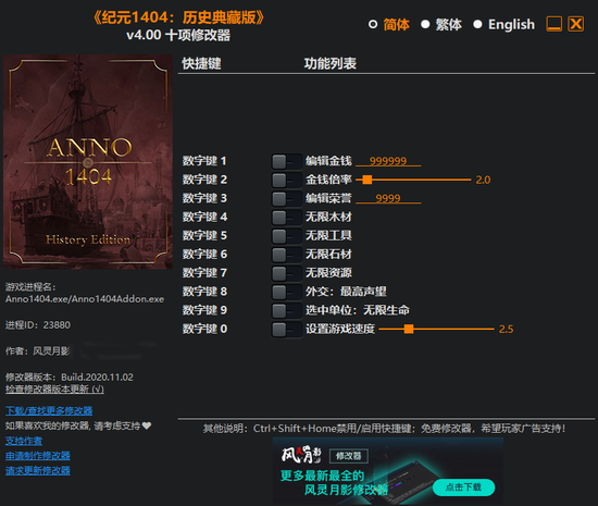 纪元1404历史典藏版修改器 v4.00 风灵月影版软件截图