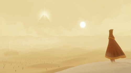 神秘的主角:游戏中的主角是一名神秘的没有名字的旅者,为了前往通往天际的高山,而踏上朝圣的旅程。