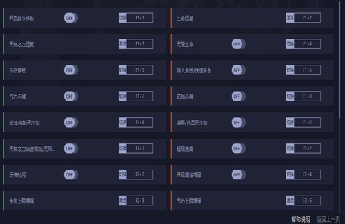 3、开启修改器各主初始项再使用各子修改项[无主初始项则不用开启][主初始项:如开启...修改]。