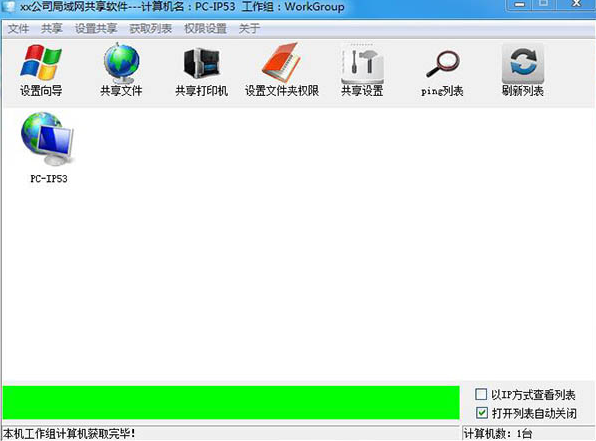 3、一键获取局域网在线电脑,一键共享文件、打开共享文件。