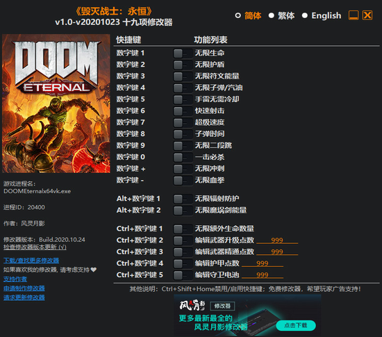 毁灭战士永恒修改器 v1.0 风灵月影版