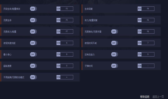 1、无限弹夹/无限手雷:无限弹夹在换弹时生效,关闭后射击至下次自动换弹时,弹夹正常减少。