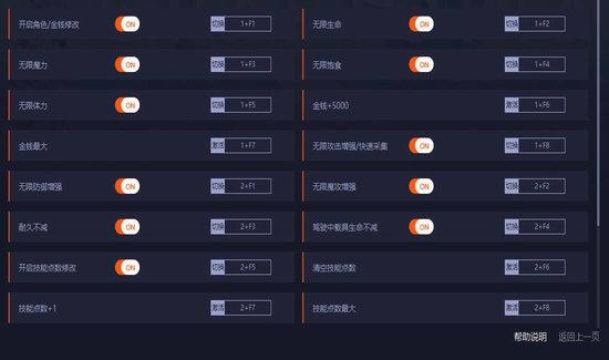 2、开启角色/金钱修改:开启后,使用角色与金钱相关项,攻击/防御/魔攻增强在关闭后通过更换装备还原;快速采集需装备斧或其他采集工具;金钱修改后在金钱变动时刷新。