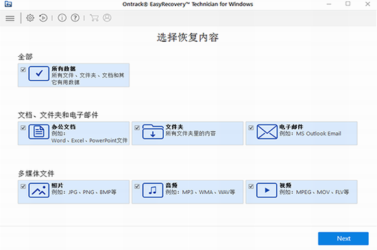支持所有文件类型的数据恢复,包括图像、视频、音频、应用程序、办公文档、文本文档及定制。能够识别多达259种文件扩展名,可设定文件的过滤规则,快速恢复数据。
