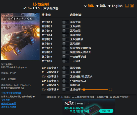 永恒空间修改器 v1.0-v1.3.5 风灵月影版
