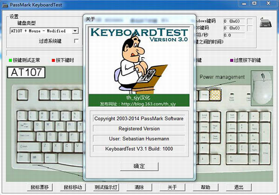 1、测试时,敲下键盘上的某个键,在软件测试图上的对应键位上,就会出现“绿色斜纹”,这表示该键位已经通过测试,没有问题。如果某键击下,而测试图中的对应键位没有反应时,那么,你手中的键盘就有问题了。
