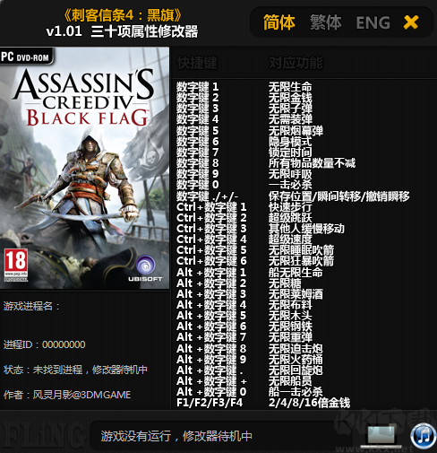 刺客信条4修改器 v1.01 风灵月影版