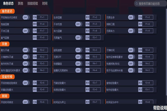 1、开启角色状态修改:载入游戏登上岛上后开启。