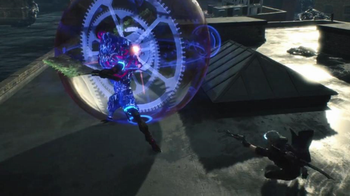 玩家通过枪械可以削弱旋转的速度,同时移动到侧面发动攻击即可将敌人打进倒地状态,当背刺破碎后敌人将无法使用齿轮攻击。