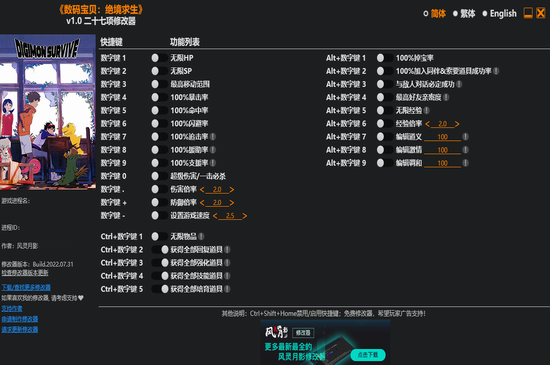 数码宝贝绝境求生修改器 v1.0 风灵月影版