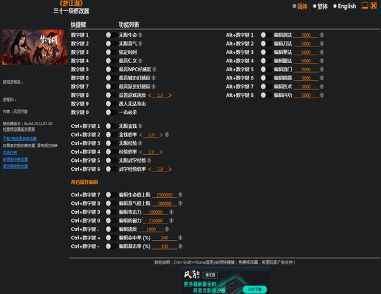 《梦江湖修改器》是一款根据同名游戏“梦江湖”改编制作而成的修改器,这款辅助工具可以修改无限生命和无限真气等,让你在江湖中,无所不能,遇敌斩敌,同时我们还有可以修改npc的好感度,遇到喜欢的人物,可以修改让他进入我们的队伍,来壮大我们的阵容,并且修改角色的属性和无限金币等在我们修改器中也是有的,没钱、没有经验都可以来修改器中进行修改,玩家使用这款辅助工具可让游戏变得更简单,更好上手,带给玩家更好的游戏体验。