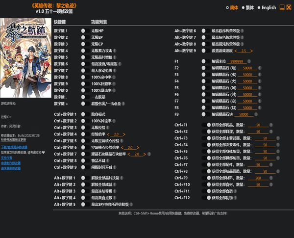 英雄传说黎之轨迹修改器 v1.0 风灵月影版