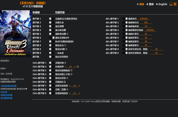 无双大蛇2终极版修改器绿色版功能介绍: