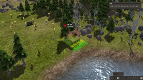 2、然后立刻建造伐木屋和生产木柴所需的设施,最好是把这些设施都建在一起,在开局的前几年,用木柴就可以比较顺利地度过冬天。