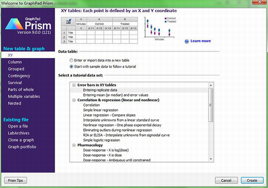 这款软件可与电子表格或其他科学制图程序不同,Prism具有八种不同类型的数据表,这些数据表专门针对您要运行的分析进行了格式设置。这样可以更轻松地正确输入数据,选择合适的分析以及创建精美的图形。
