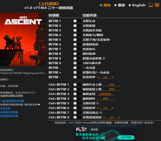 上行战场修改器 v1.0-v71464 风灵月影版软件截图