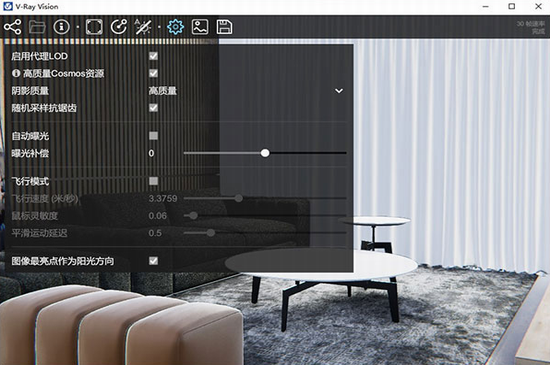 记录渲染历史,直接在 V-Ray 的帧缓存窗口中调整色彩,曝光。