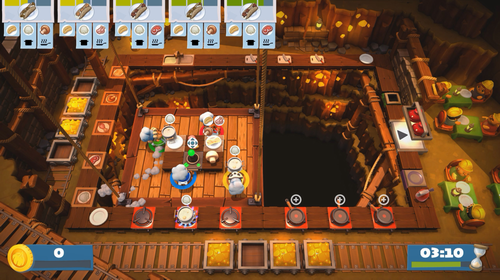 1、保持冷静!- 穿过传送器,跨过移动平台,为了节约时间你们甚至要在不断变化移动的厨房中互相投递食材。有的厨房甚至会将你的厨师甩到其他地方。