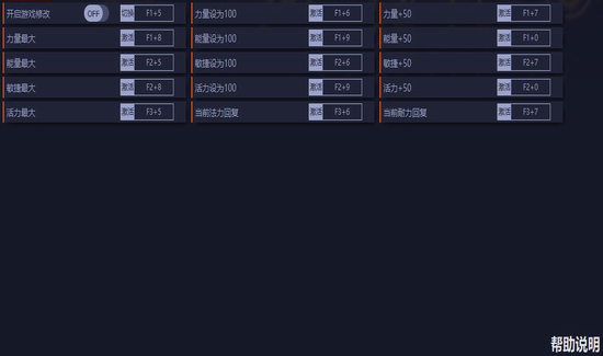 3、开启修改器各主初始项再使用各子修改项[无主初始项则不用开启][主初始项:如开启...修改]。