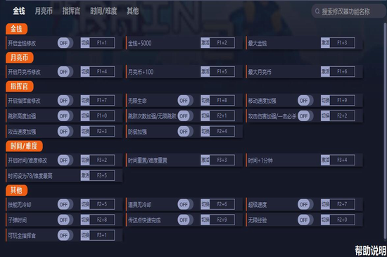 3、开启修改器各主初始项再使用各子修改项[无主初始项则不用开启][主初始项:如开启...修改]。