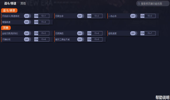 3、开启修改器各主初始项再使用各子修改项[无主初始项则不用开启][主初始项:如开启...修改]。