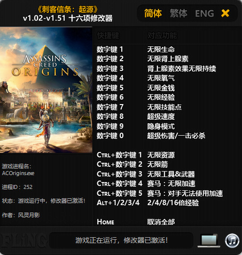 刺客信条起源修改器 v1.02-v1.51 风灵月影版