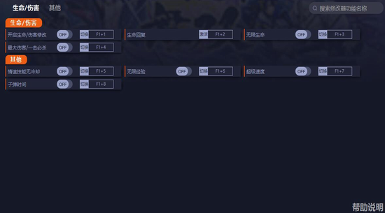 3、开启修改器各主初始项再使用各子修改项[无主初始项则不用开启][主初始项:如开启...修改]。