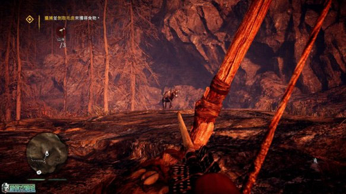 2、制作好弓箭后可以对地图中的山羊进行捕猎,任务需要猎杀三头山羊。可以先按C进行蹲伏来靠近山羊,之后搭弓瞄准。注意如果靠的太近,山羊很可能会被吓跑。