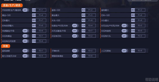 3、开启资源/生产/建造修改:进入游戏场景后开启(加载游戏关闭),再使用资源,出兵,建造修改。