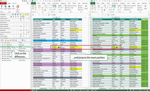 3、插入的列和行-对同步器来说没什么大不了的,插入的行和列大多是一个棘手的挑战,同步器11没什么大不了的。插入的列和行被准确地识别并自动高亮显示,一旦确定,一个方便和易于使用的界面将引导您完成合并或更新单元格的过程。所有这些都是简单的鼠标点击。