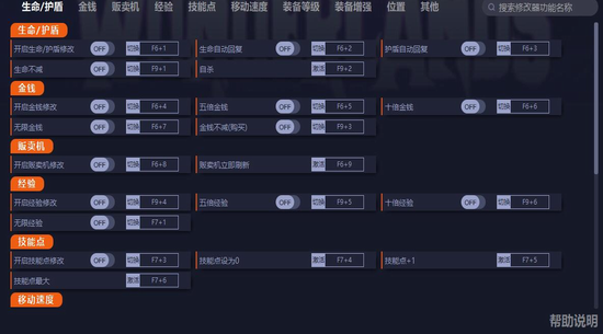 3、开启修改器各主初始项再使用各子修改项[无主初始项则不用开启][主初始项:如开启...修改]。