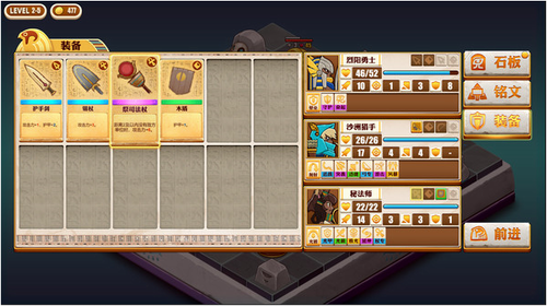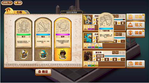 1、石板系统:每一次胜利后都可以从三个随机石板中选择一个来加强角色,打造属于你的尼罗河勇士小队吧。