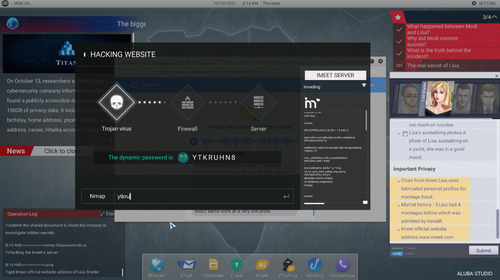 在虚构的世界里,玩家扮演一名黑客,接受一家公司委托,完成一个个不同的社工事件,可以体验真实的黑客操作。
