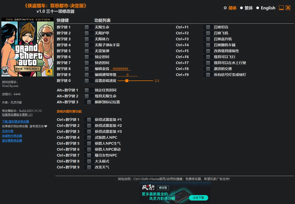 - 侠盗猎车手罪恶都市重制版三十一项修改器风灵月影版 788.22KB 查看详情