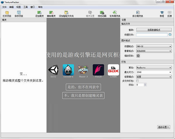 1、创建一个精灵表只需要将您的精灵拖到该软件上;