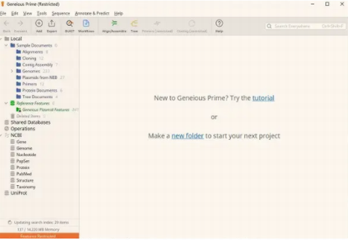 《geneious prime破解版》是一款功能强大实用且操作简单易上手的分子生物学和序列分析工具,这款软件给广大的用户们提供了业内最先进和最全面的分子生物学和序列分析工具套件,具有梯形拟合和峰值调用功能,同时这款软件还能自动生成基因型微卫星位点和等位基因列表,它还为用户们提供了序列对比、序列观看、PCR引物设计等多种功能,能够满足用户们的各种工作需求,提高用户们的工作效率,更加明确直观的对比出各种分子之间的区别和相同之处,并且这款软件可以帮助用户完成序列数据值分析、各种基因预测、Sanger测序分析结果等,使研究人员对生物基因有了强大的辅助,轻松完成各种相关分析。