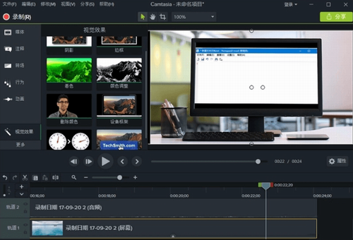 Camtasia为您提供易于定制的预制动画,效果通过拖放功能为您的视频增添专业性与润色效果。