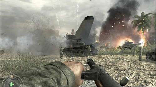 4、使命召唤5重回了二战的怀抱,不过这次设计公司放弃了已被打烂了的欧洲战场,而将游戏舞台搬到了南太平洋战区来,因此这次主要面对的敌人,也变成了同是轴心国一员的“日本帝国军”,由于崇尚武士道不投降主义的关系,日军将会不择手段以赢得胜利。