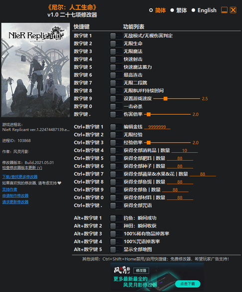 尼尔人工生命升级版修改器绿色版功能介绍: