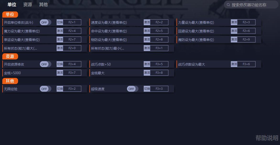 《三角战略修改器下》是一款根据同名游戏“三角战略”改编制作而成的修改器,在游戏中是一个被架空的中世纪时代,玩家所在的王国被其他势力入侵,你的任务就是为了复国而战斗,为了让玩家可更好的体验这款游戏,本次带来了“三角战略修改器”这款辅助工具,本修改器具备强大的功能,包括了无敌模式,无限制TP、即时赢、无限物品等等一共有16项修改功能,基本可以满足三角战略游戏玩家的需要,让大家在游戏过程中更加轻松。