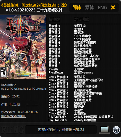 英雄传说闪之轨迹2改修改器 v1.0-v20210225 风灵月影版