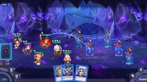 2、在战斗中基本上是半自动进行,己方角色(自动)→玩家的卡支援→敌人的回合进行;