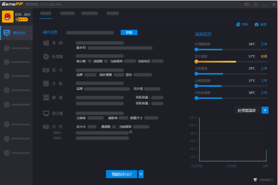 4、游戏加加提供了许多实用功能:硬件监视器,桌面覆盖,游戏内叠加,游戏视觉优化,游戏加速,热键屏蔽,读取计算机配置信息。